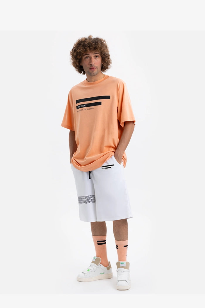 An unexpected elegance. This salmon t-shirt by Phil Hunt is designed for those who want to stand out with taste. The black logo in the center creates a sophisticated contrast, emphasizing the unique character of the brand. Made Made of premium cotton and Made in Italy, it is a symbol of uncompromising streetwear luxury.