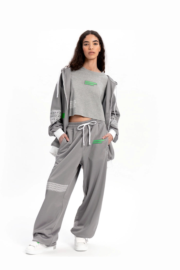 Elegant and bold, the 100% cotton women's grey t-shirt, Made in Italy, is the perfect mix of comfort and style. The logo in the center and the small "p" on the side are distinctive details that make it one of a kind. With its crop cut, this t-shirt represents the meeting point between streetwear luxury and practicality, for those looking for an exclusive and timeless look.