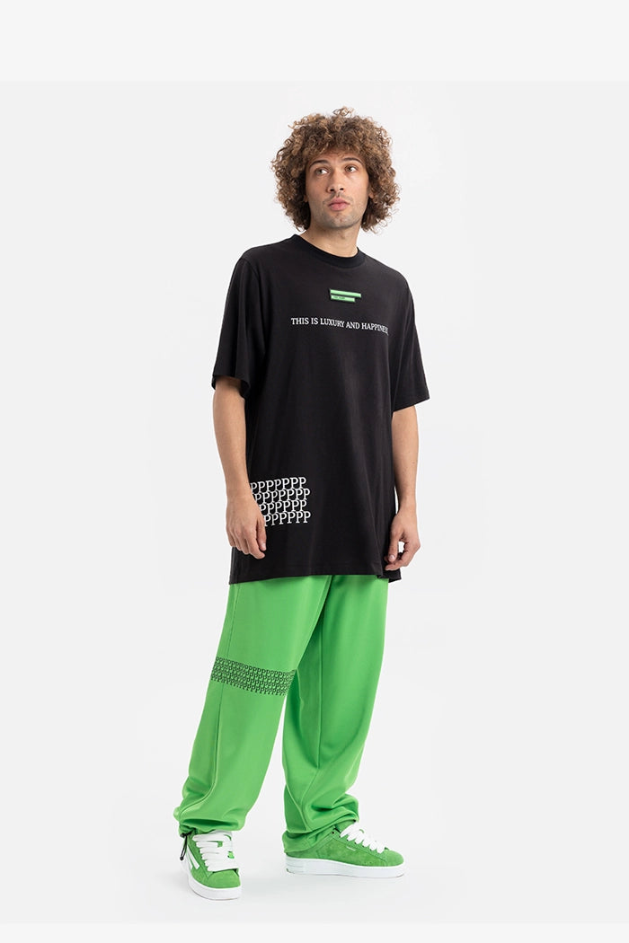 Una t-shirt da uomo nera, 100% cotone e Made in Italy, che porta un tocco di eleganza e raffinatezza al tuo stile quotidiano. L’accessorio con il logo al centro e le piccole “p” sul lato aggiungono un contrasto di streetwear esclusivo, creando un look che non passa inosservato. La vestibilità comoda e il design sobrio la rendono un capo versatile, ideale per ogni occasione, dal casual all’elegante.