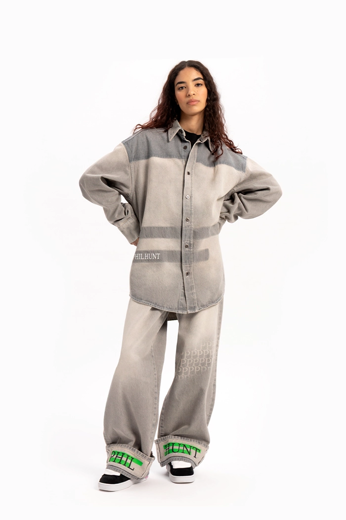 Un mix perfetto tra estetica rilassata e dettagli esclusivi. La camicia oversize in denim grigio si distingue per la sua texture morbida e il taglio fluido, pensato per adattarsi con naturalezza a ogni movimento. La stampa del logo sul petto le dona un carattere autentico, mentre i bottoni logati elevano il design con un tocco distintivo. Un capo essenziale per chi vuole ridefinire il concetto di streetwear di lusso con un’eleganza disinvolta.